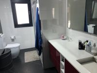 Modern 6 1 bedroom villa located in quiet area of Kolossi, close to Alpha Mega supermarket. The plot is 600 sq. m and the covered area is 376 sq. m. The villa consists of two floors: on the ground floor there is separate fully equipped kitchen, spacious living room connected with dining area & built-in aquarium, guest WC, master bedroom en-suite with walk-in wardrobes and another three bedrooms (one en-suite with shower). On the first floor three are three bedrooms (including maid's room), shower, guest WC and library. Also there is gym room, sauna, swimming pool, Jacuzzi, fountain, outdoor toilet with shower and indoor/outdoor bar. The villa is furnished and equipped, with central heating (gas), central VRV air condition system, cameras and security system, intercom, gated entrance, solar panels for hot water, double glazed windows, water pressure system, parquet floor and 2 covered parking.