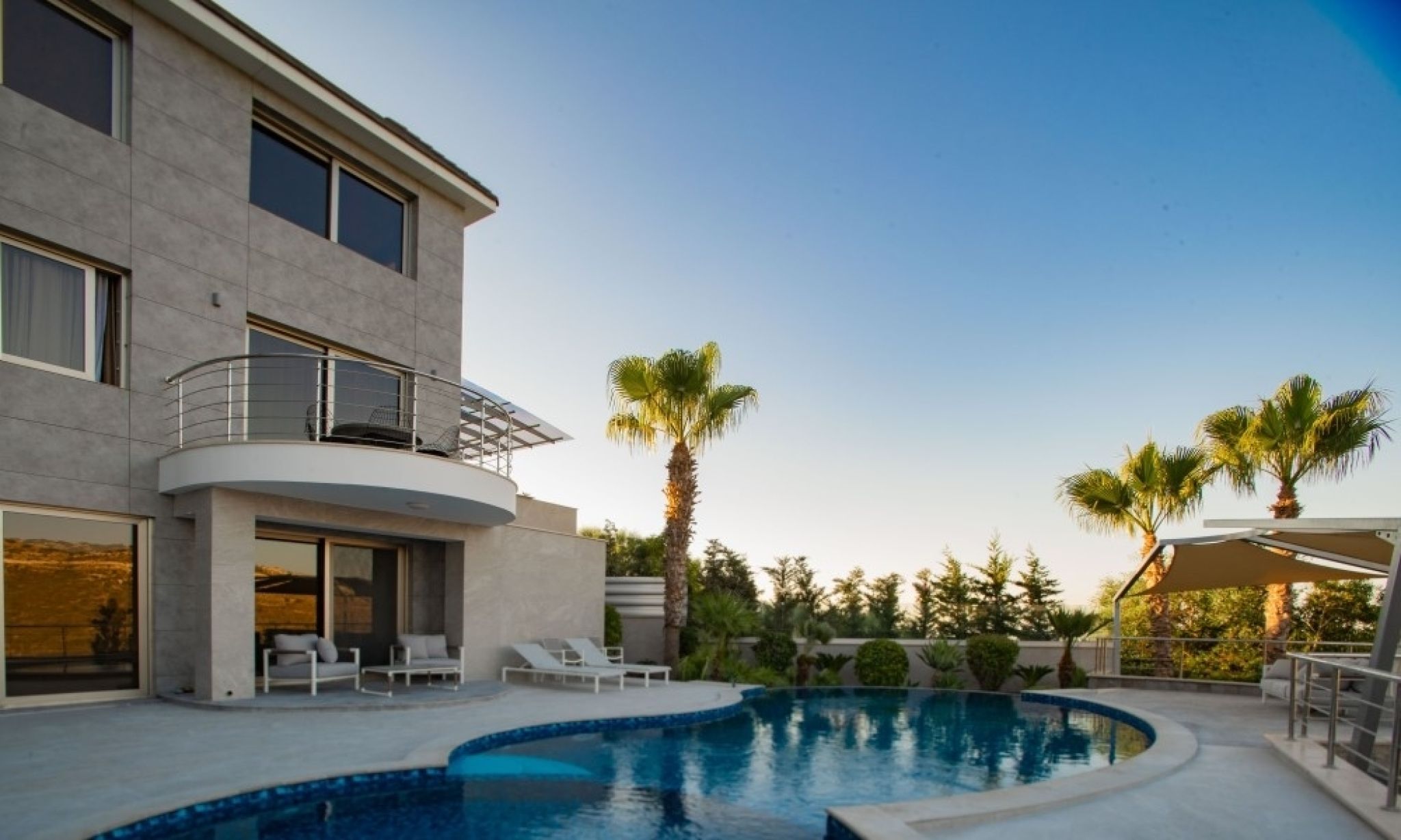 Resale - This modern luxurious 5 bedroom villa is located on the hill in the prestigious and desirable area of Agios Tychonas. It is located 5 minutes away from the five stars hotels: Four Seasons and Amathus and 10 minutes from Limassol city centre.