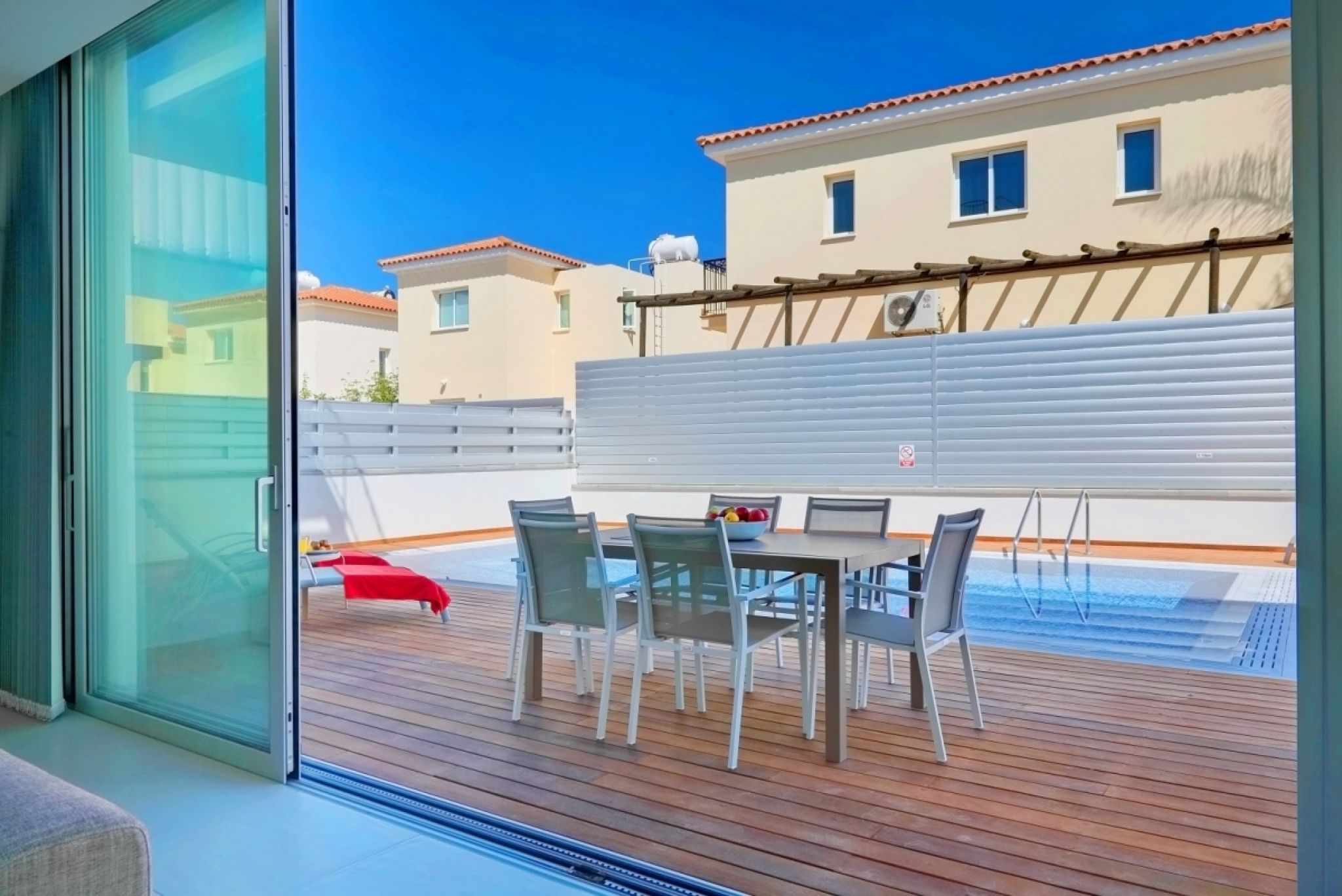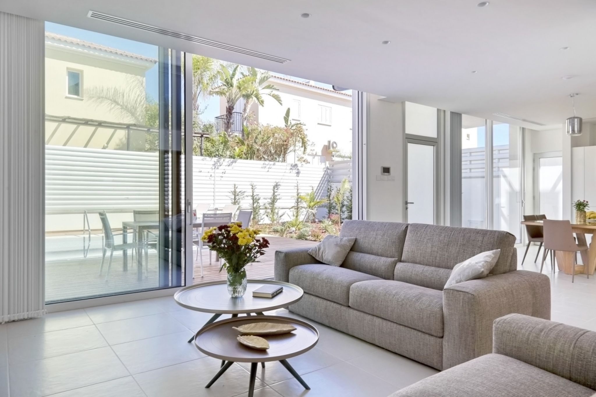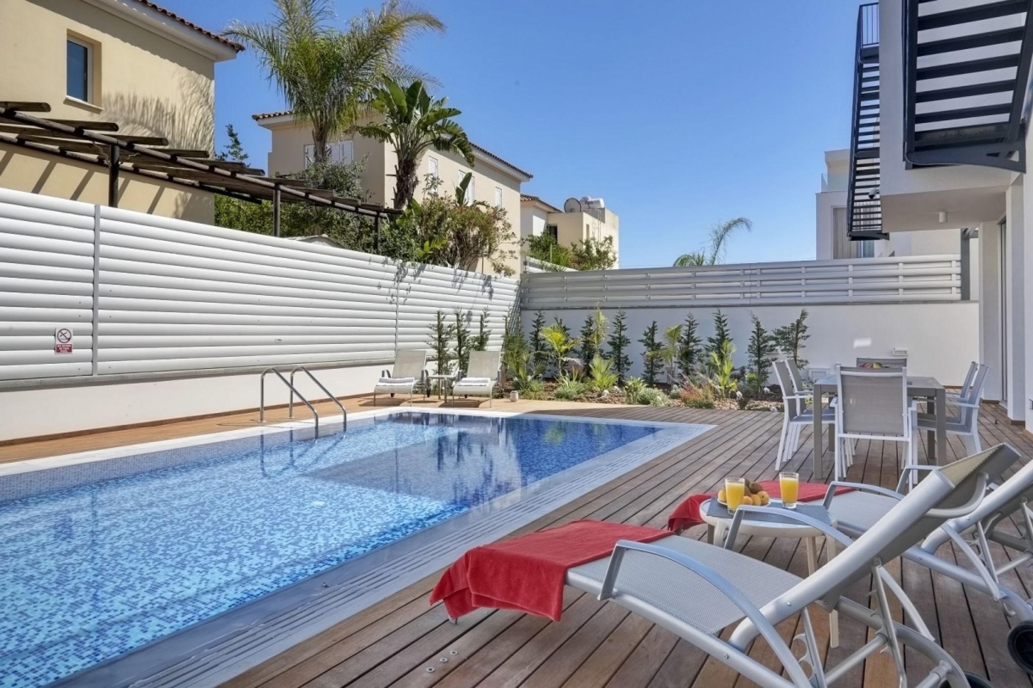 Situated in a prestigious residential area of Protaras, in the southeast corner of Cyprus, this villa is 350m from several Blue Flag beaches. The villa is part of a gated and secure complex of one-of-a-kind residences that are well-balanced in terms of architectural design, innovative building materials, and color palette. Despite being part of a development, the villa stands on its own plot with a private garden and swimming pool, and the orientation of each property promotes solitude. From the highest-quality construction to the finest finishing touches, this villa combines contemporary design and all the necessary safety and comfort features to make it a home.