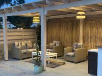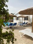 The cozy detached one-storey house consists of a living room with an open plan kitchen, 3 bedrooms and a family bathroom. There is a private bathroom near the swimming pool.