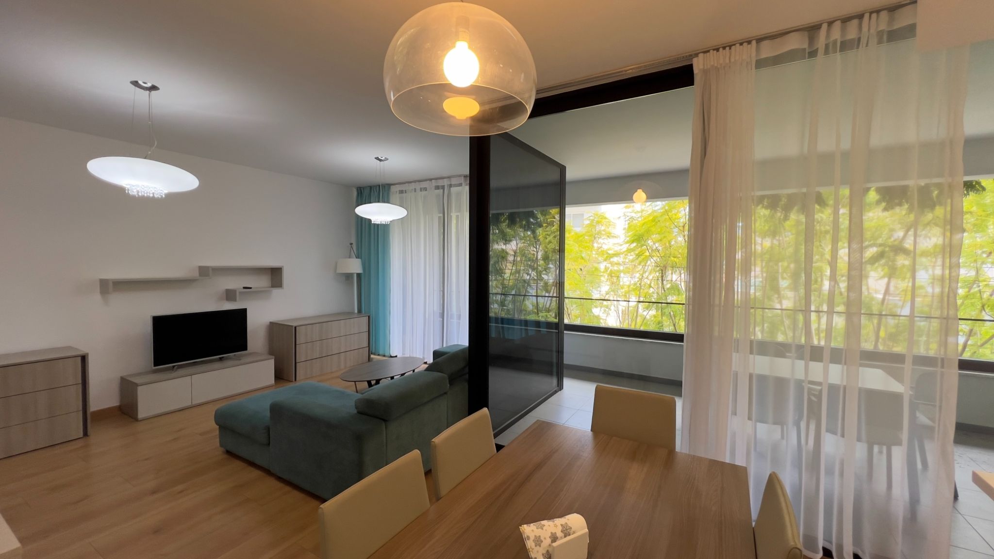 Thiis three-bedroom apartment is located on the 2nd floor, with an amazing view of trees, in the area of Makariou, 1km from the beach, close to all amenities such as supermarket Sklavenitis, schools, restaurants, business centers. There are 3 bedrooms, a fully equipped kitchen with a dishwasher, and 3 bathrooms (one ensuite shower, 1 family bathroom, 1 guest WC). A/c in all rooms, solar panels for hot water, double-glazed windows, and electrical shutters. Built in 2020. Also, there is a covered parking and storage room in the parking area.