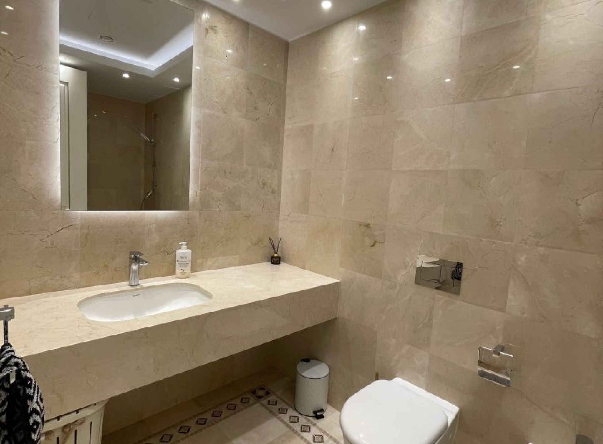• Bathroom floors and walls with marble and granite