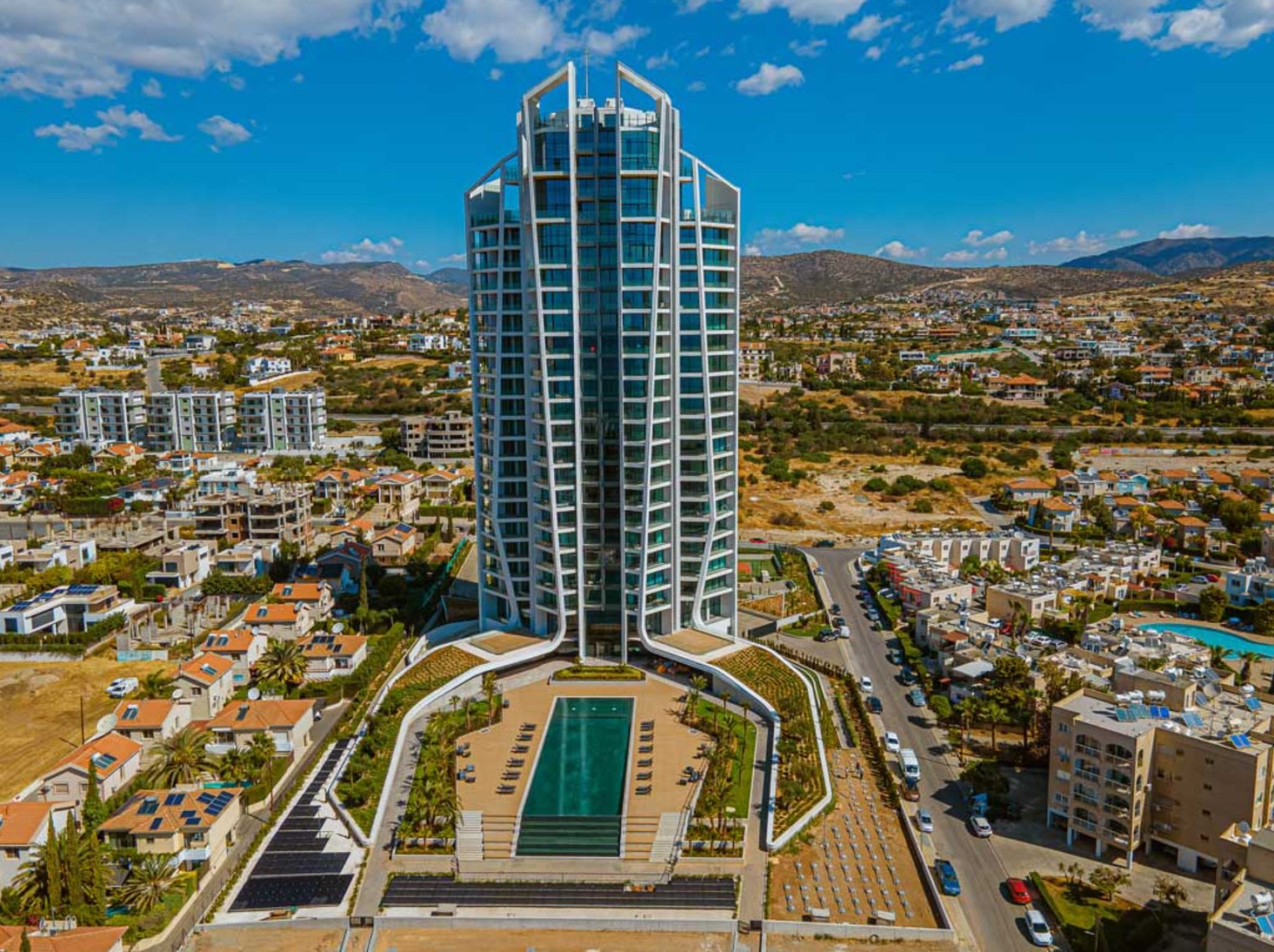 This 100 meter sky tower consists of 89 one, two, three and four bedroom luxury apartments, penthouses and duplexes with private pools on the roof garden. High ceilings of 3.15 m, and high-quality finishing will please the most demanding buyer. Most of the apartments offer breath-taking views to the Mediterranean Sea, Limassol city and its picturesque hillside suburbs.