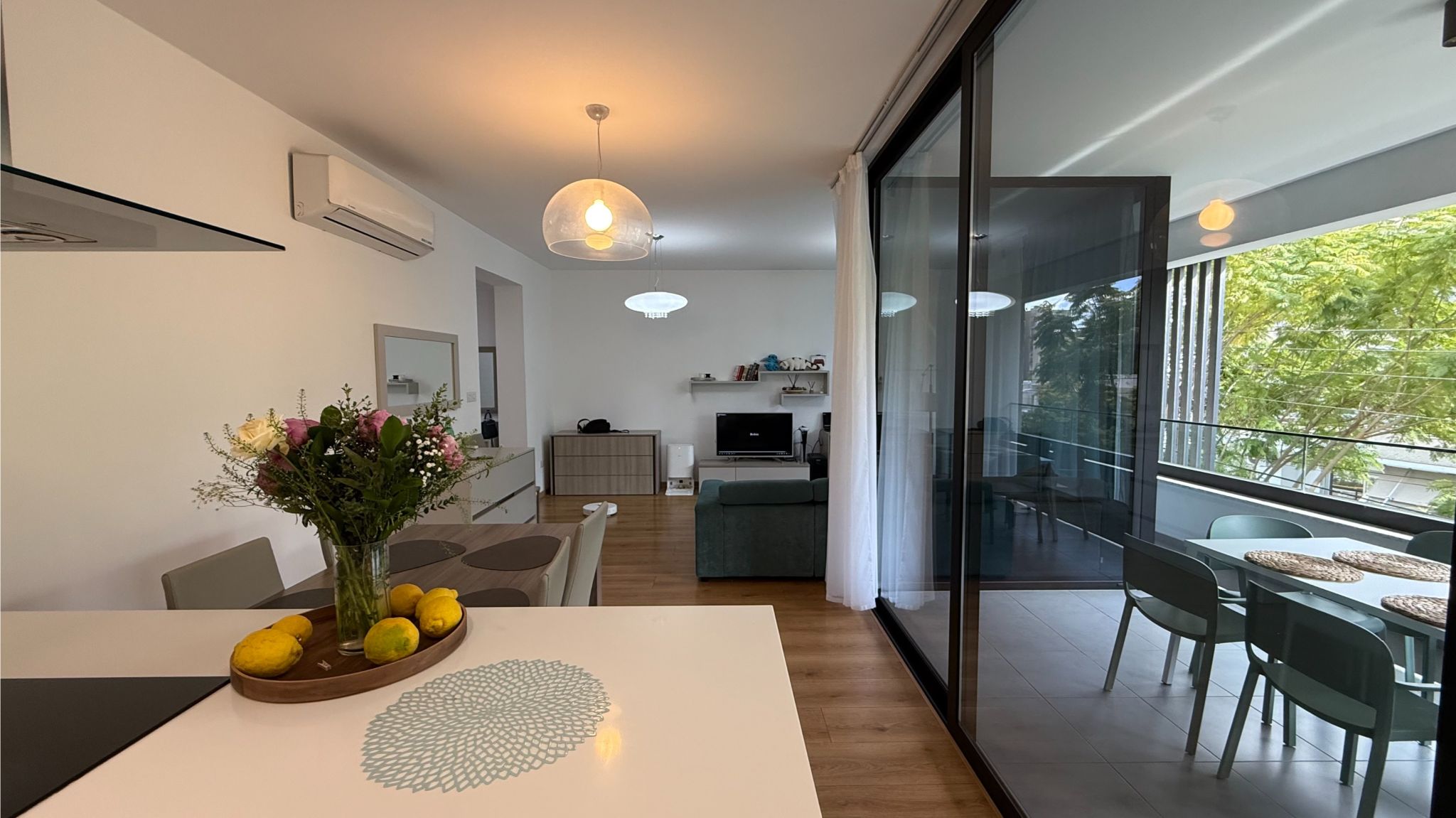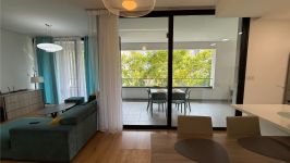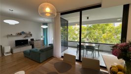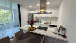 The three-bedroom apartment is located on the 2nd floor, with an amazing view on the trees, in the area of Makariou, 1km from the beach, close to all amenities such as supermarket Sklavenitis, schools, restaurants, business centers. The covered area is 102sq.m and the covered veranda is 25sq.m. There are 3 bedrooms, a fully equipped kitchen with a dishwasher, and 3 bathrooms (one ensuite shower, 1 family bathroom, 1 guest WC). A/c in all rooms, solar panels for hot water, double-glazed windows, and electrical shutters. Built in 2020. Also, there is a covered parking and storage room in the parking area.