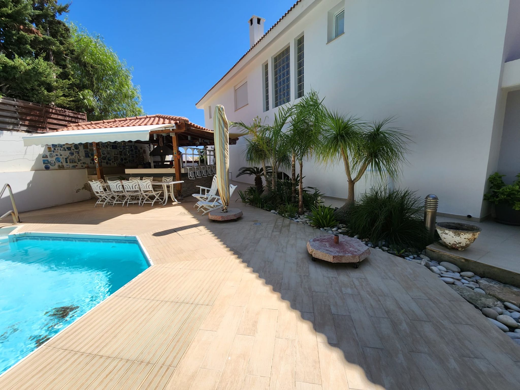 Located in Kalogiroi area of Germasogeia, short drive to the beach and ten minutes away from the centre of Limassol, giving you full and quick access to all amenities and city life.Year Built: 1993/ Renovation done: in 2012 and 2020/3 levels/ 7 Bedrooms/6 Bathrooms/ 3 Kitchens/ 3 Living rooms/Private swimming pool/ TV And telephone points in all areas/ Central telephone system/ Central High-Definition TV System/ Central Music System/ Central satellite dish/ Full air-condition throughout/ Heating with 3 floors setting/ Gazebo/ Automating irrigation system/ Water well/ Landscaped mature garden/ Pressurized water system/ Double Glazed/ En suite/ Jacuzzis (2 Master Bedrooms)/ En suite bathrooms (1 Bedrooms)/ Big wardrobe space/ Full alarm system/ Granite kitchen worktops/ Granite staircase and entrance lobby/ Stone decorations in and out/ Covered kiosk and bar/Attic/ Electric shutters in all windows remote controlled driveway/ 3 stops pneumatic glass elevator garage for 2 cars/ Garage for 2 more cars/ Extra apartment with 3 bedrooms and 2 bathrooms/ Impeccable condition/ Unobstructed sea views/ Mountain views/ Pool shower/ Sunroom/ Laundry room/ Light and shutter full automation with 3 keypads and touch screen/ Camera CCTV system/ Water softener/ Cesar kitchen High tech/ Water fountain/ Re-painted/Covered area: 889 sq.m./ Plot size: 500 sq.m.