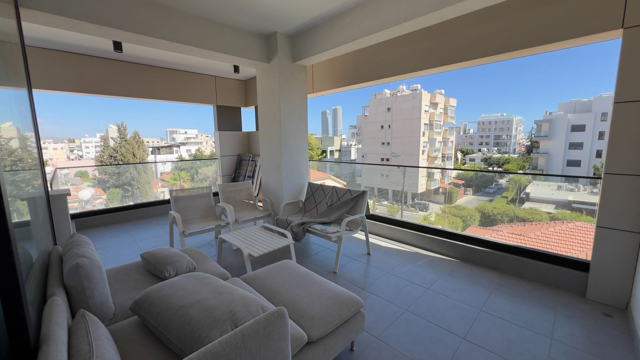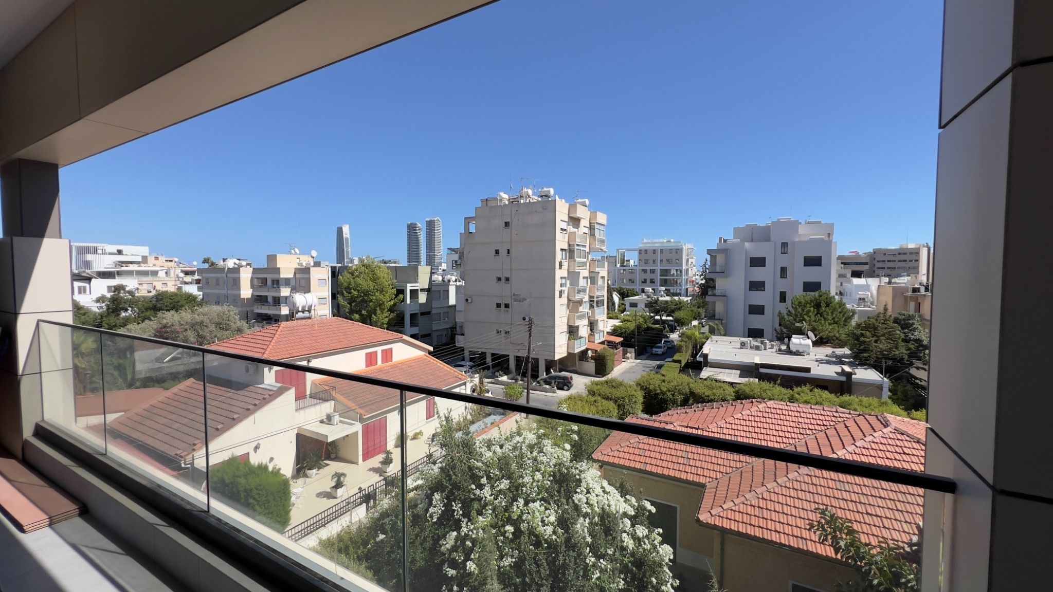 The 2-bedroom fully furnished and equipped apartment is located in immediate proximity to Makariou Avenue and Riga Fereou, right in the heart of Limassol, within walking distance to pharmacies, supermarkets, and restaurants, and just 700m from the beach. It has 2 bathrooms (with the bathtub and guest WC), a/c split units in all rooms, storage on the ground floor, covered parking, and a spacious covered terrace to enjoy your morning coffee.