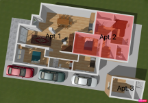 - 3 private parking spaces (as shown in the visualizations)