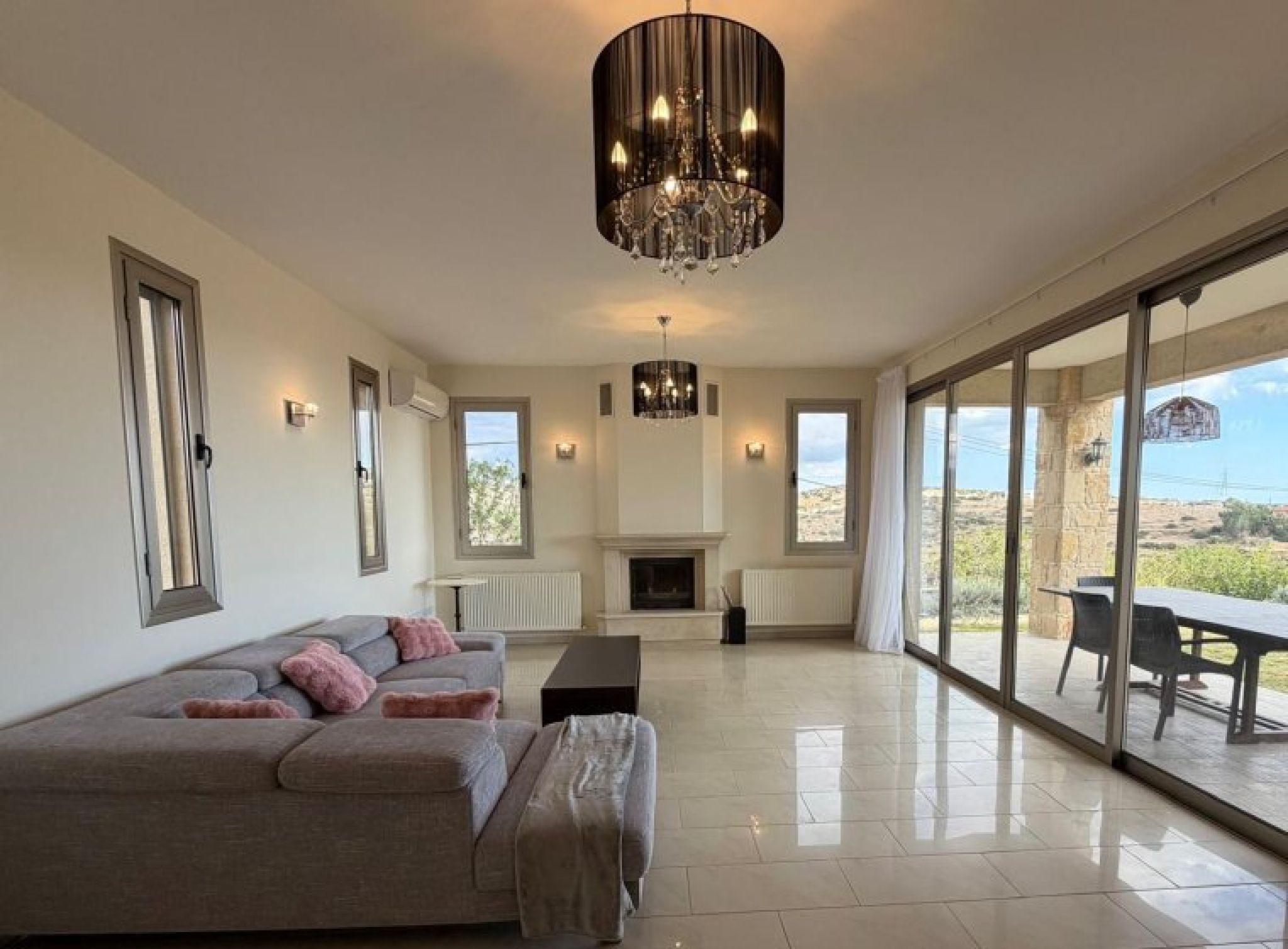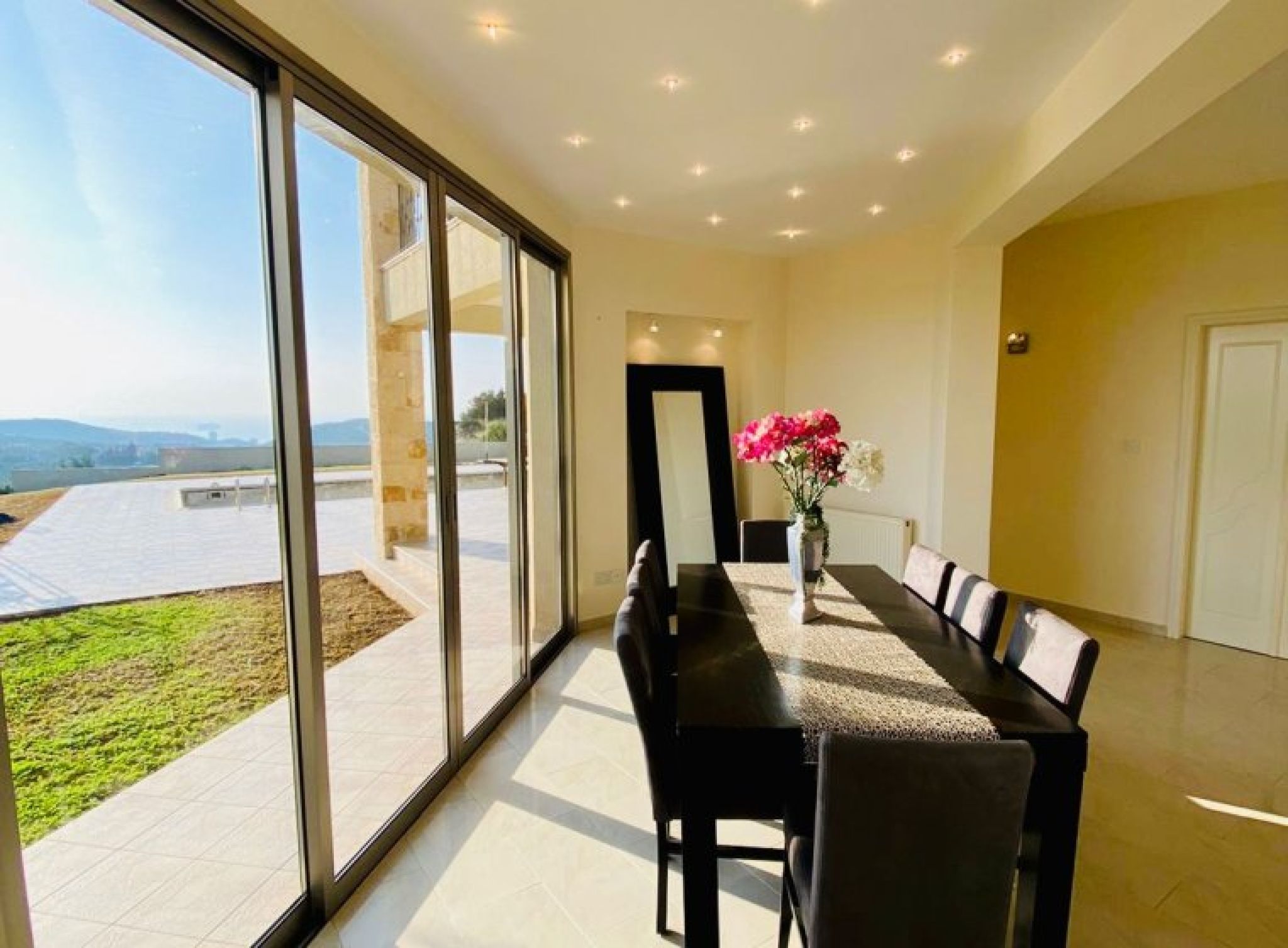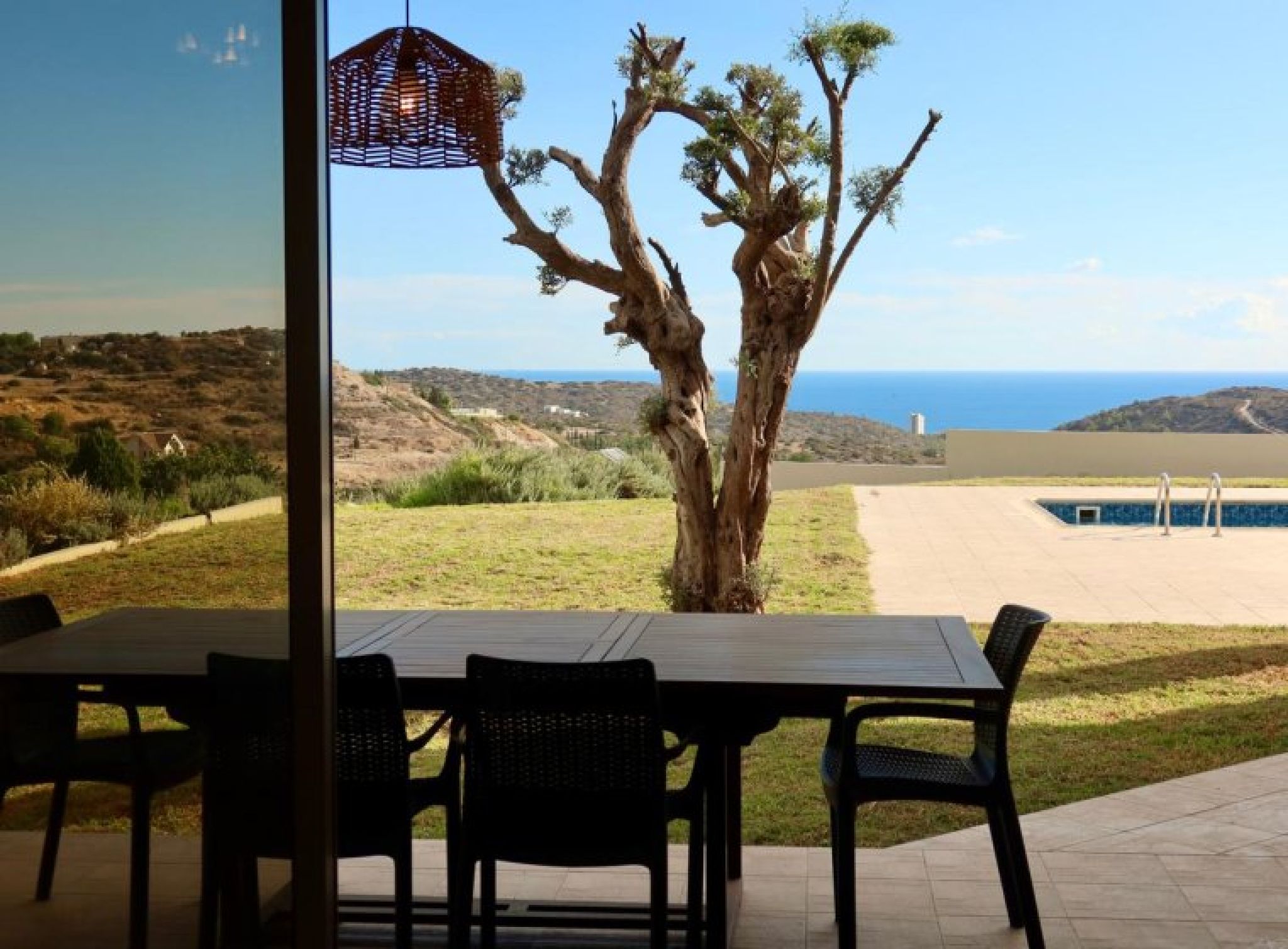 Fantastic 4-bedroom detached house with panoramic unobstructed sea and mountain views in Parekklisia with pool. Built in 2010 on a plot of over 2100m2, this is truly a fantastic property built to the highest standard. The views are breathtaking. Comprising of Ground Floor, Separate lounge area with log burner, patio doors to the veranda and pool. Large dining room, Guest WC, Storage room, Double bedroom with a good-sized ensuite including bath and shower. Separate fully fitted kitchen with pantry and utility room. First Floor, Large hallway currently used as games room. 3 double bedrooms, master with ensuite and walk in wardrobe as well as a 10m2 veranda with beautiful sea and mountain views. All bedrooms have fitted wardrobes, the 2nd bedroom also has a veranda with same views. Good size family bathroom with bath and shower. Outside The outside space is very private and peaceful. To the rear, large grass lawn with established trees and shrubs, pool and covered patio area. The front garden has grass lawn, trees and plants. There is a long driveway with electric gates and a double garage.