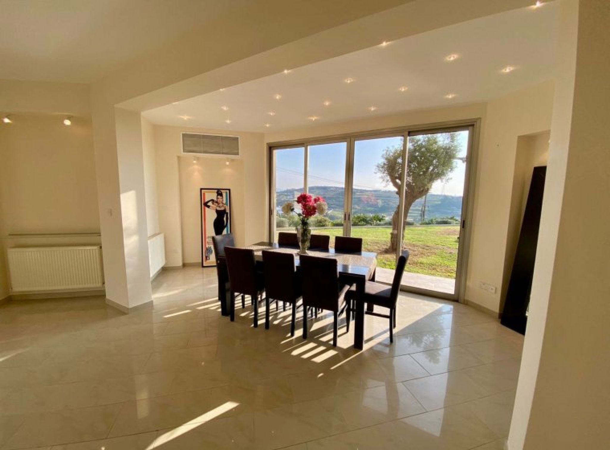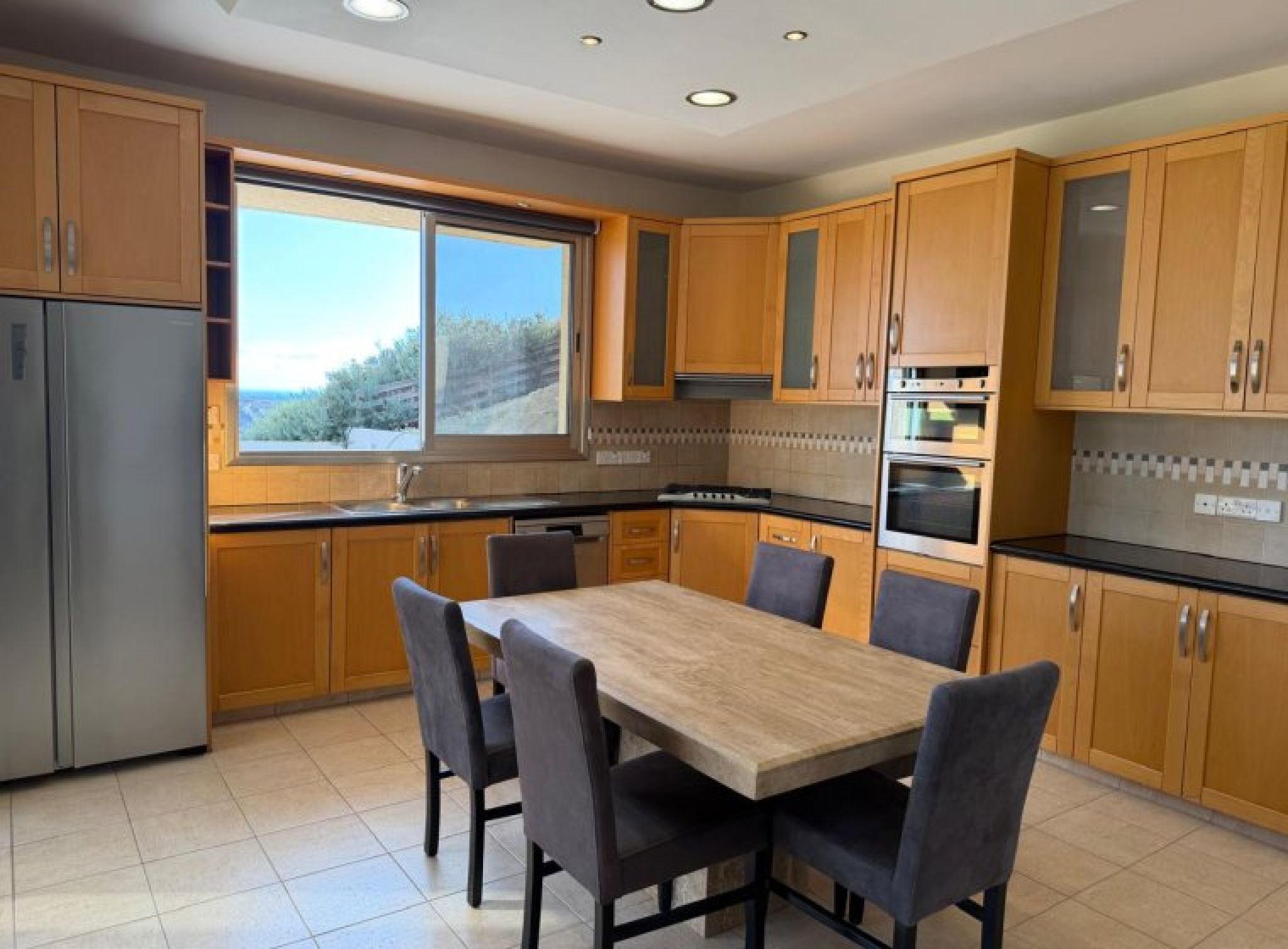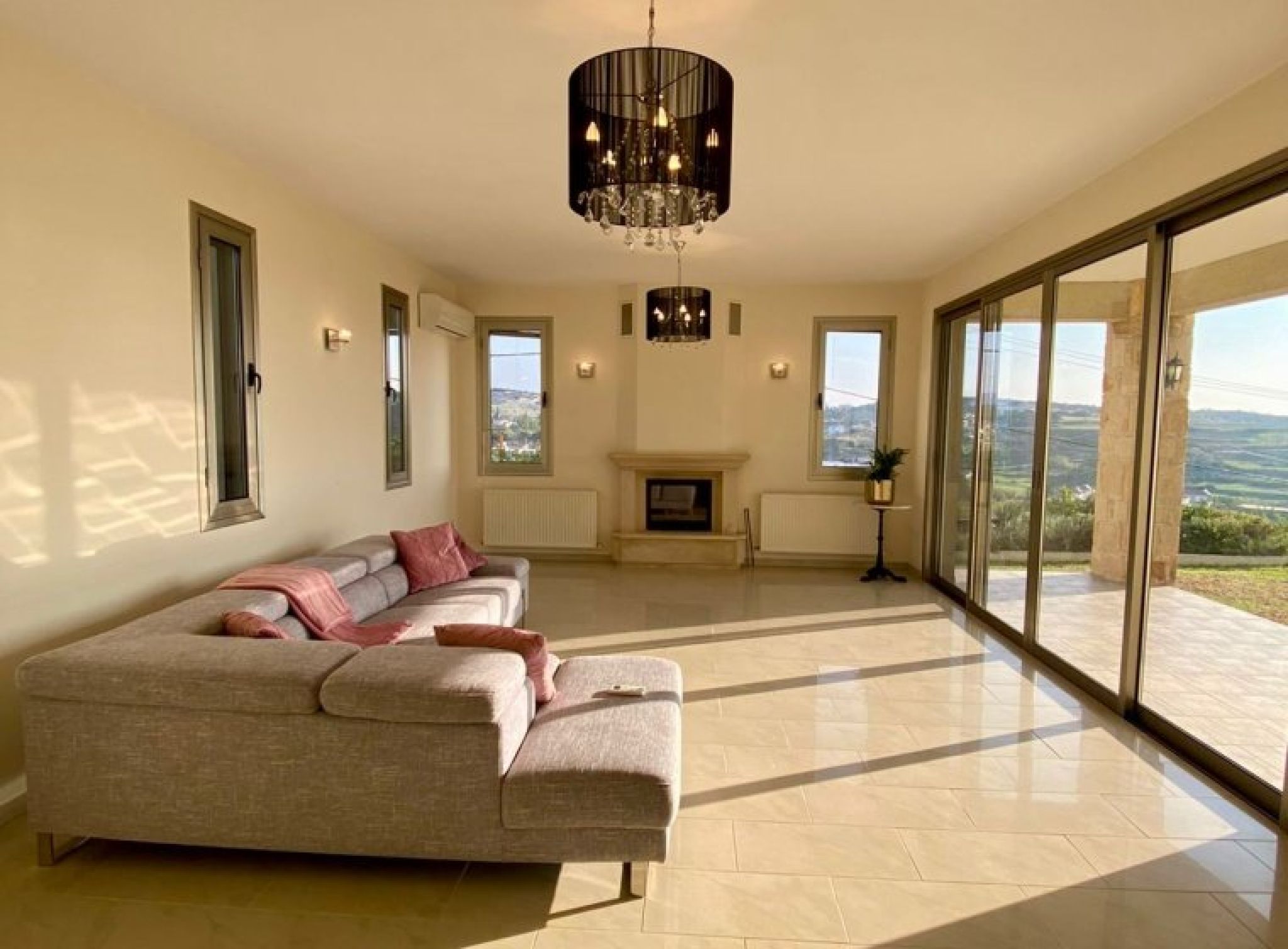 Fantastic 4-bedroom detached house with panoramic unobstructed sea and mountain views in Parekklisia with pool. Built in 2010 on a plot of over 2100m2, this is truly a fantastic property built to the highest standard. The views are breathtaking. Comprising of Ground Floor, Separate lounge area with log burner, patio doors to the veranda and pool. Large dining room, Guest WC, Storage room, Double bedroom with a good-sized ensuite including bath and shower. Separate fully fitted kitchen with pantry and utility room. First Floor, Large hallway currently used as games room. 3 double bedrooms, master with ensuite and walk in wardrobe as well as a 10m2 veranda with beautiful sea and mountain views. All bedrooms have fitted wardrobes, the 2nd bedroom also has a veranda with same views. Good size family bathroom with bath and shower. Outside The outside space is very private and peaceful. To the rear, large grass lawn with established trees and shrubs, pool and covered patio area. The front garden has grass lawn, trees and plants. There is a long driveway with electric gates and a double garage.