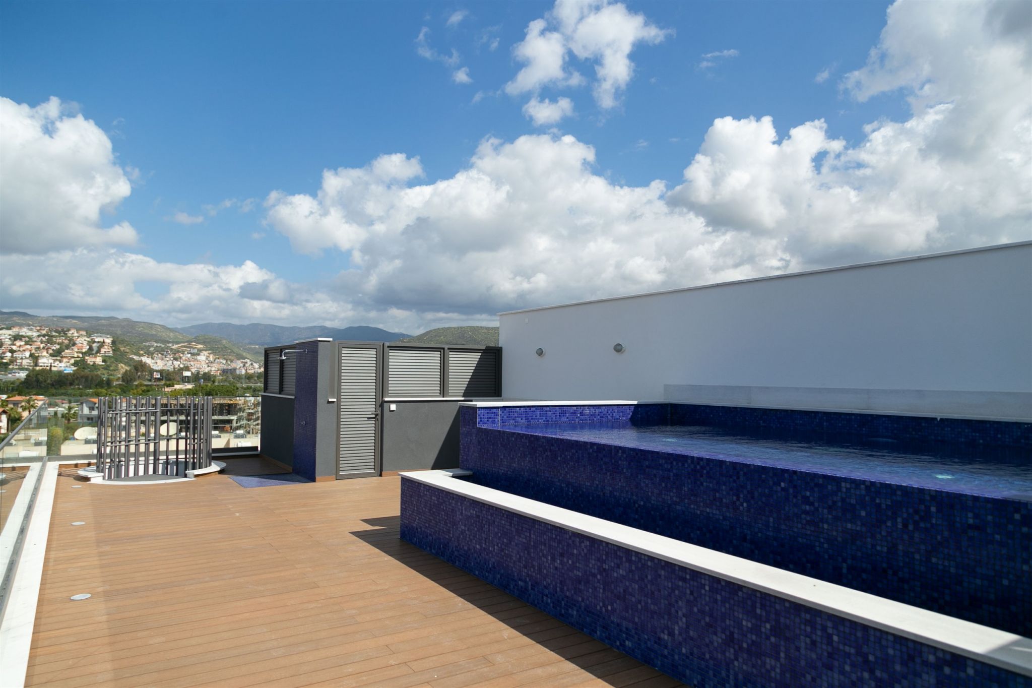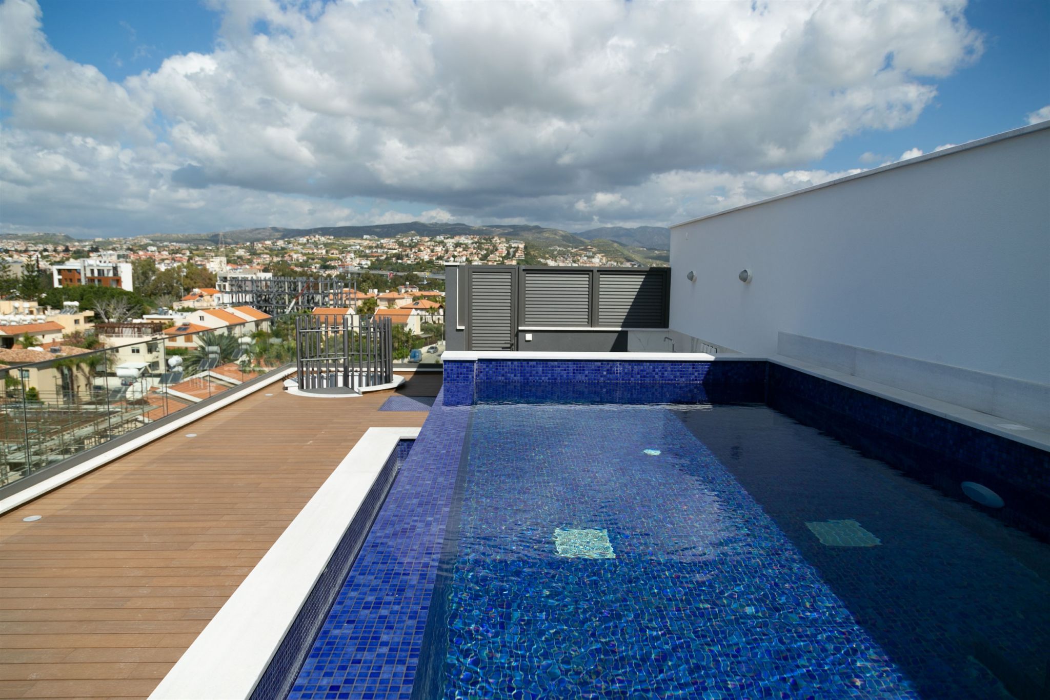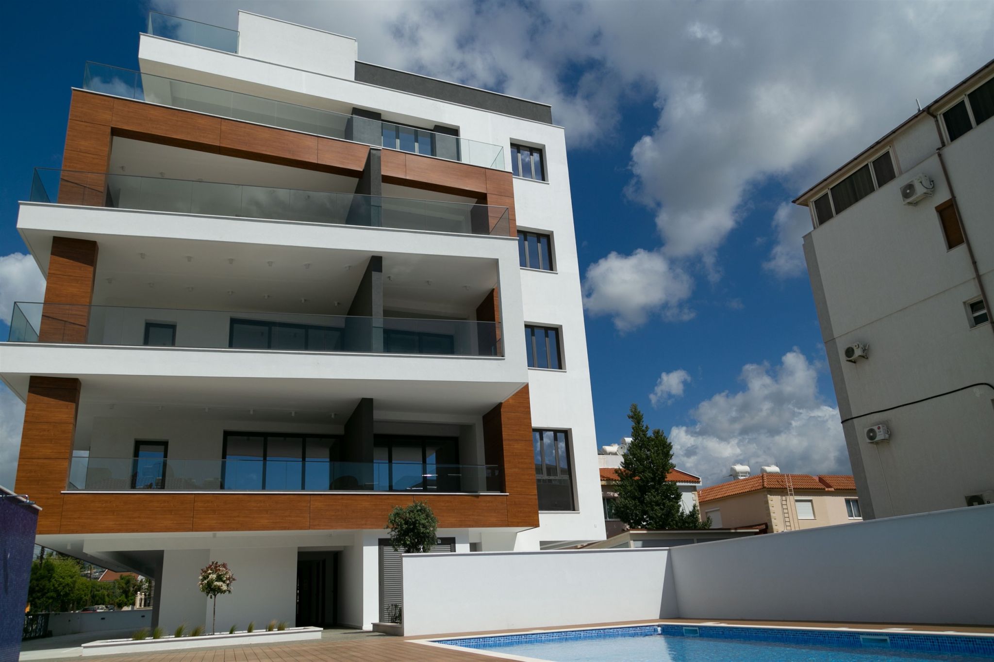 The complex consists of 4 floors with 12 one, two and three bedroom apartments and penthouses with private roof gardens, covered parking and private store rooms for each apartment, solarium, common swimming pool and gardens.
