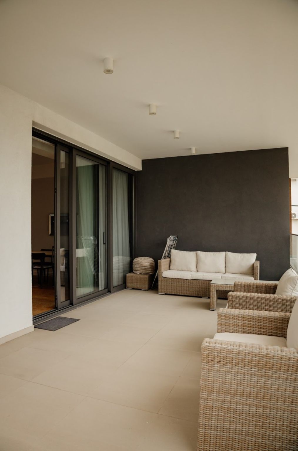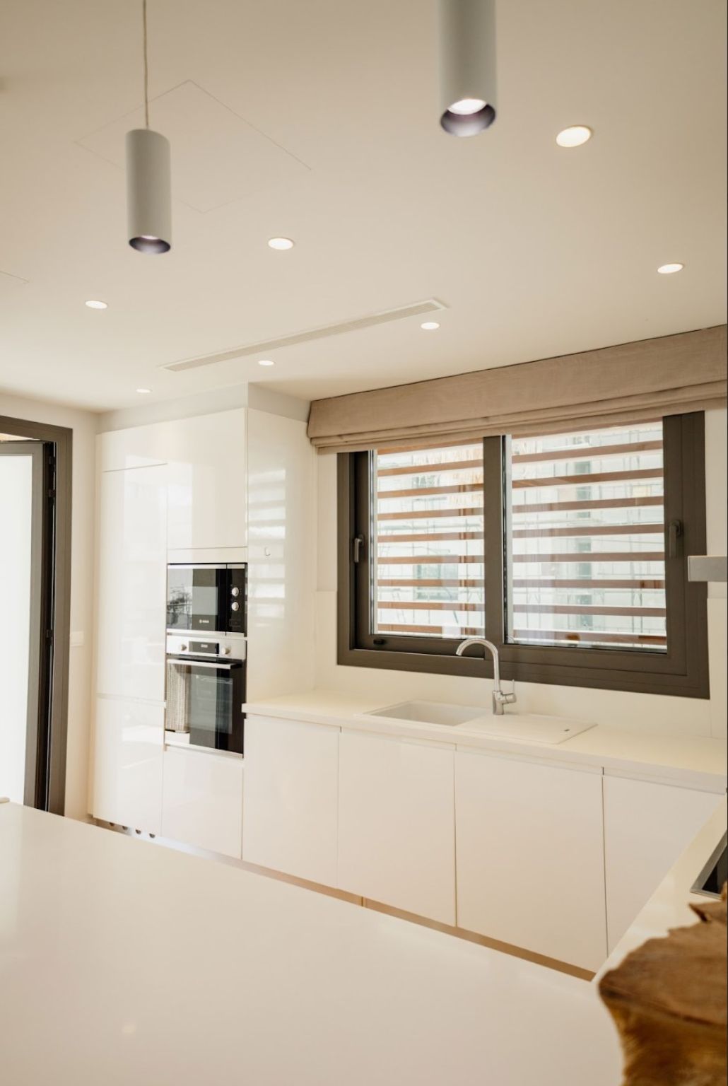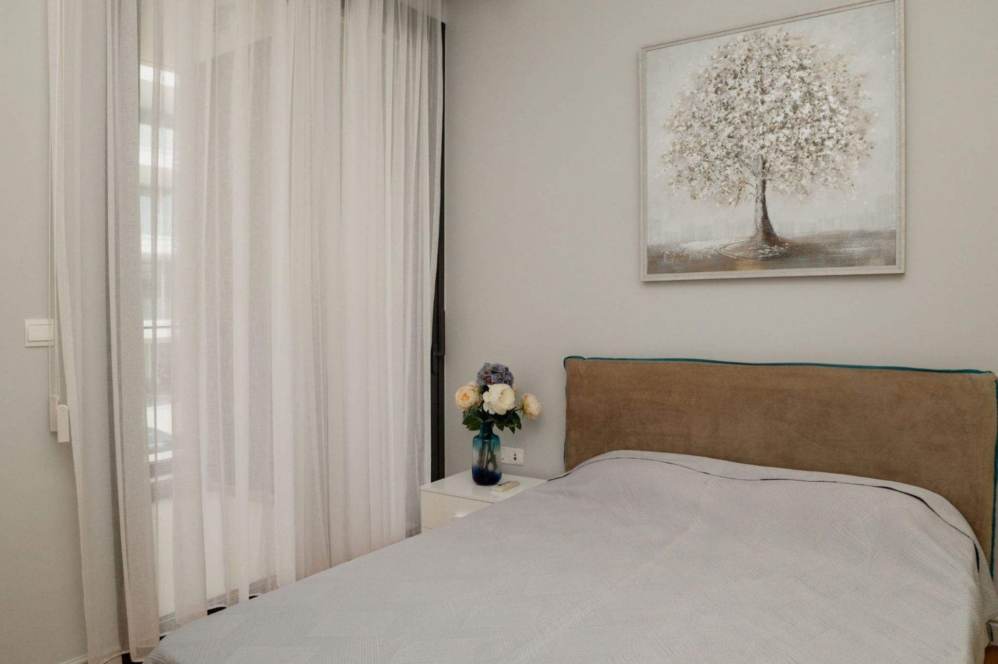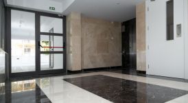 The apartment benefits from its favourable location on a large corner plot of 1249 m² , surrounded by sidewalks for pedestrian and roads, yet tucked away from neighbouring buildings and the noise of the main road.