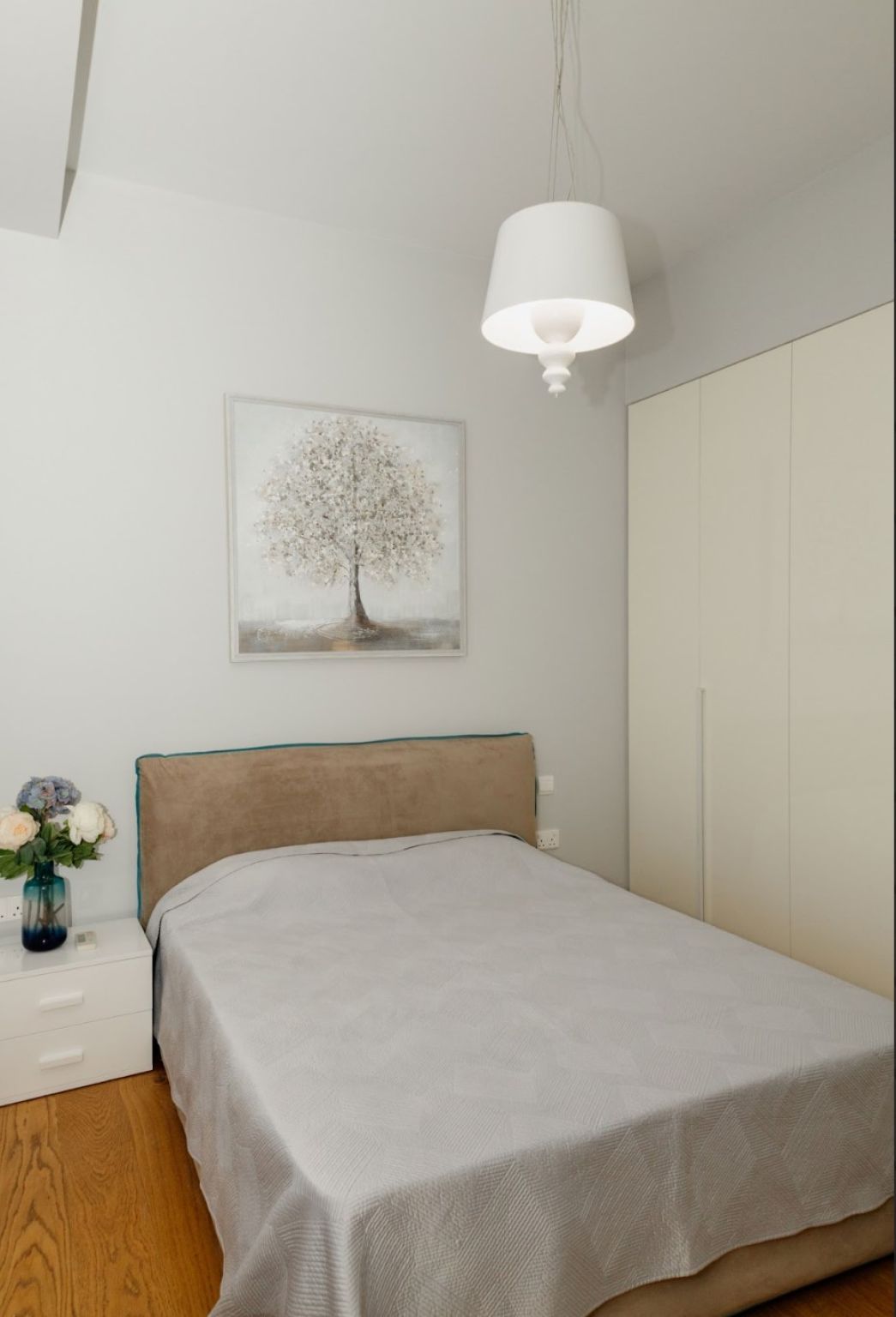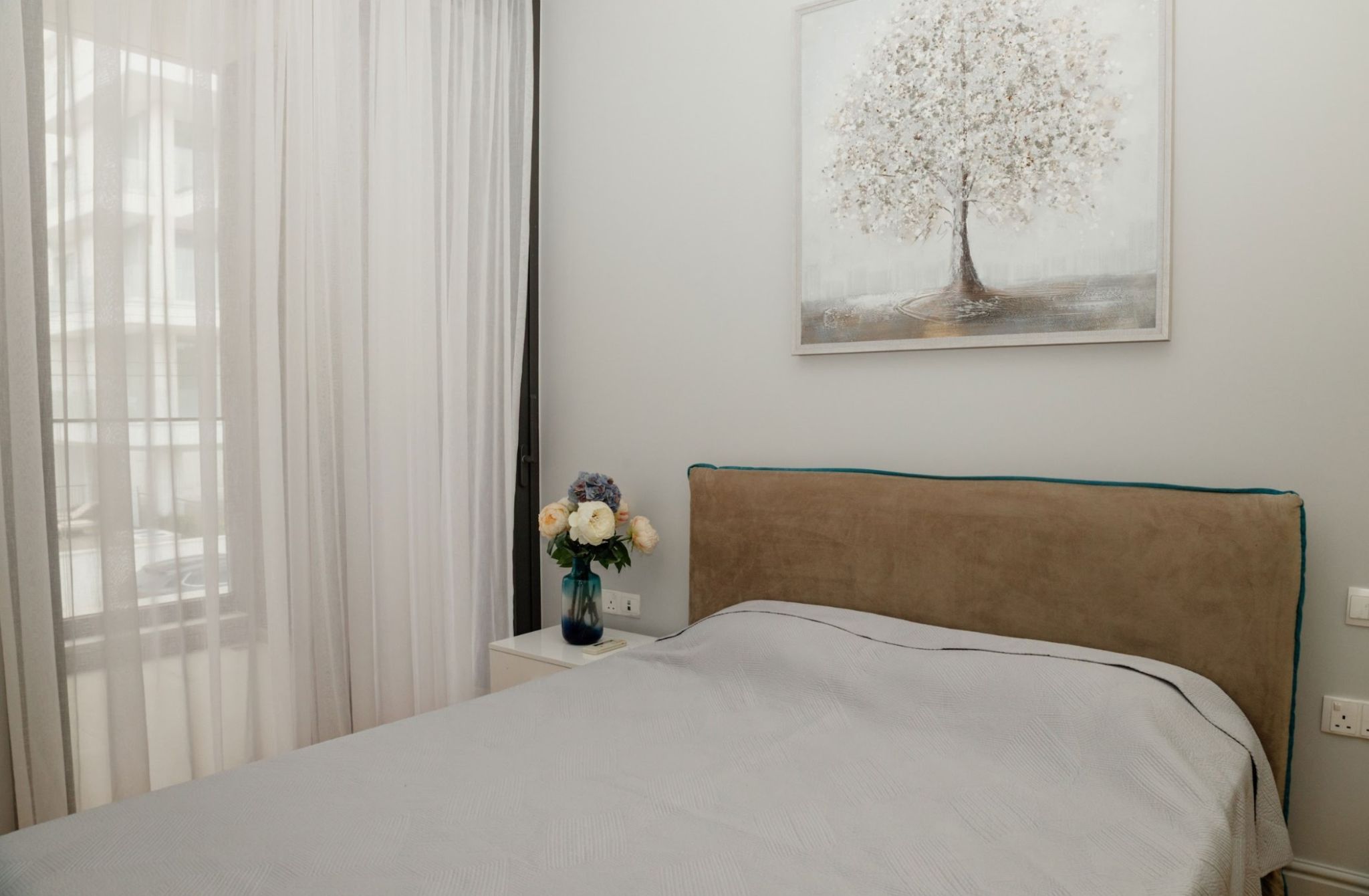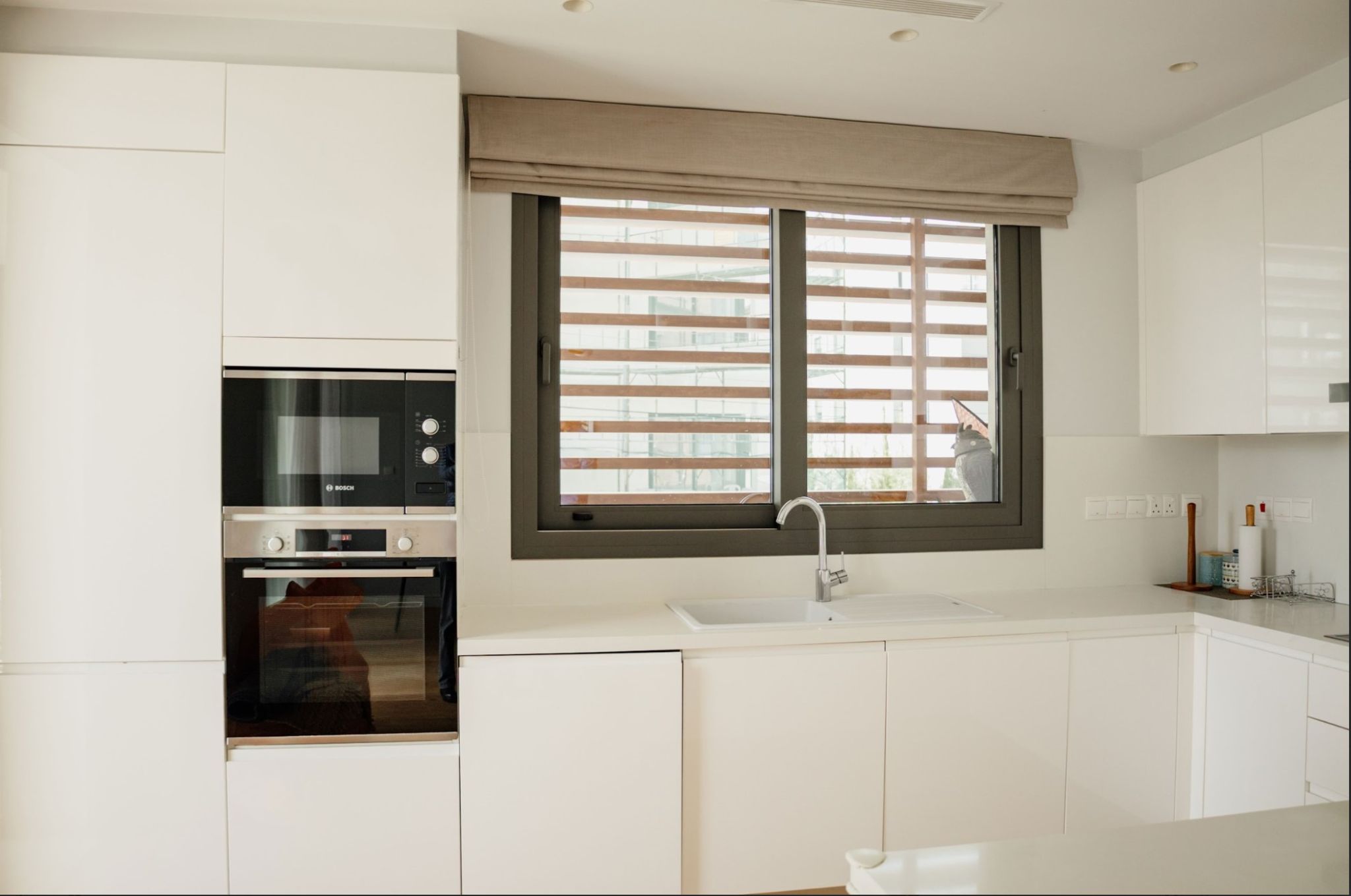 The apartment benefits from its favourable location on a large corner plot of 1249 m² , surrounded by sidewalks for pedestrian and roads, yet tucked away from neighbouring buildings and the noise of the main road.