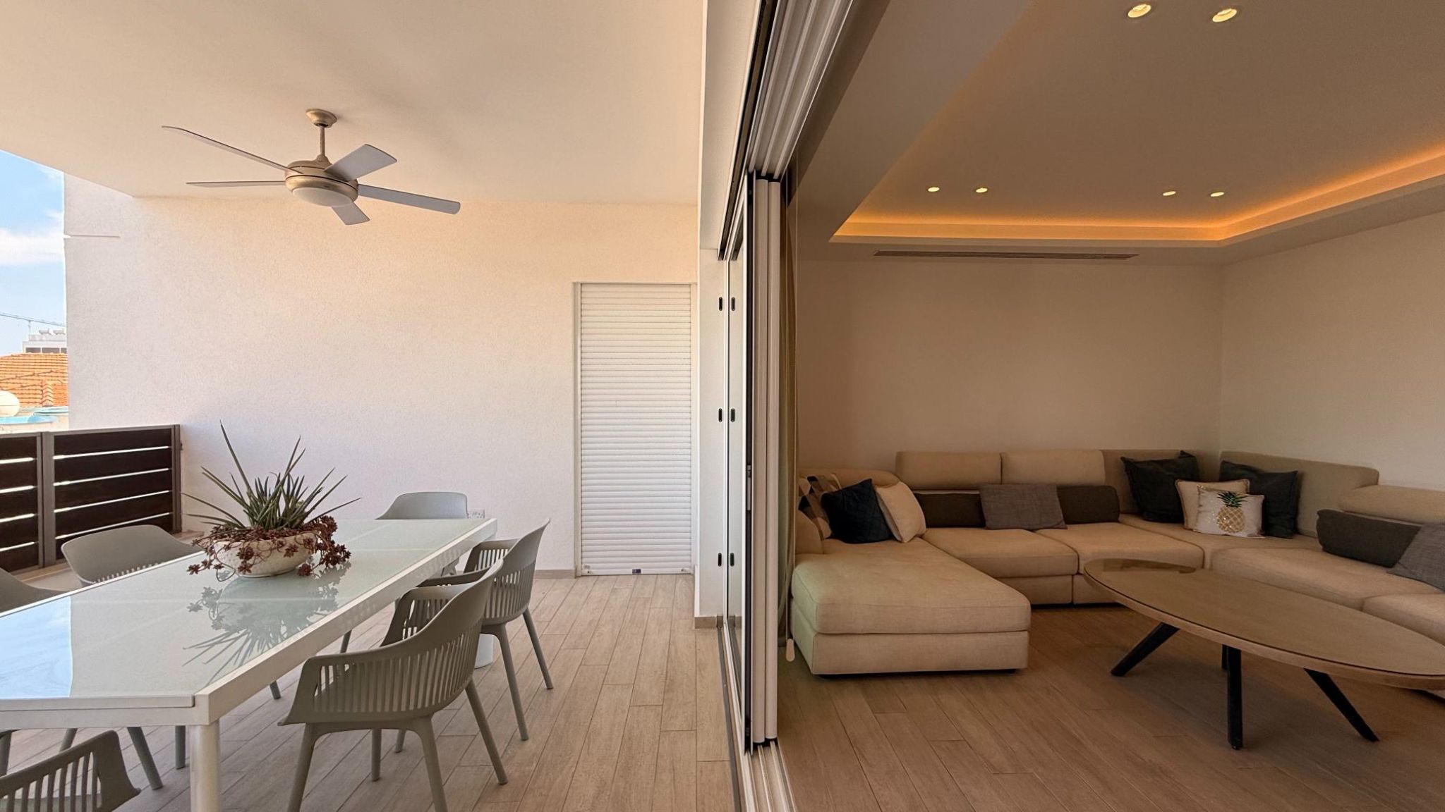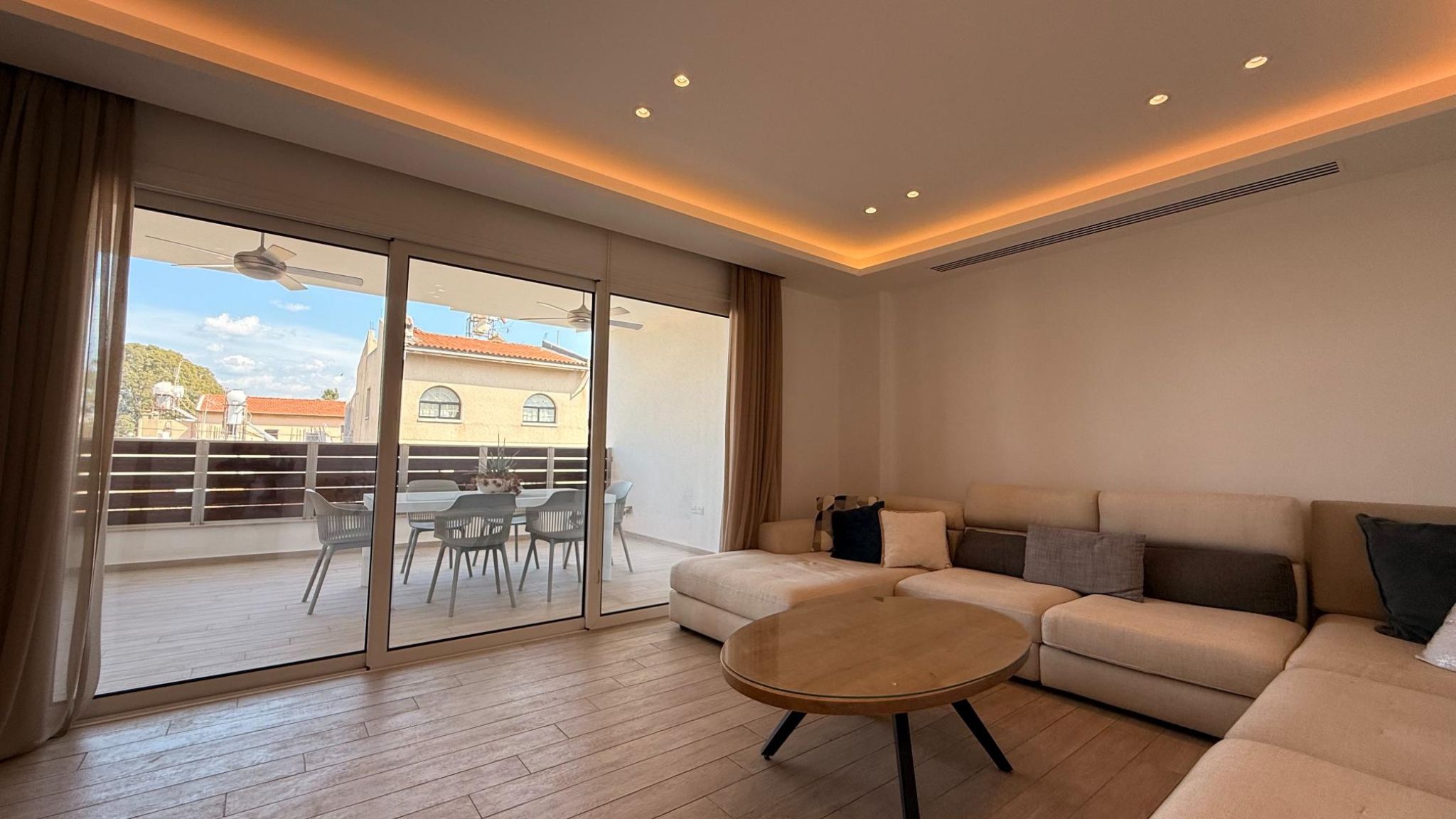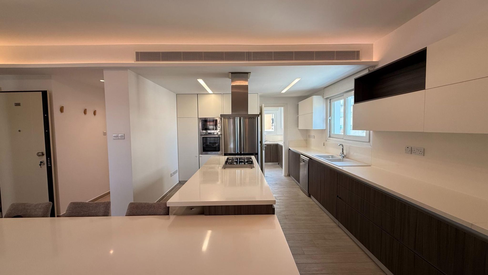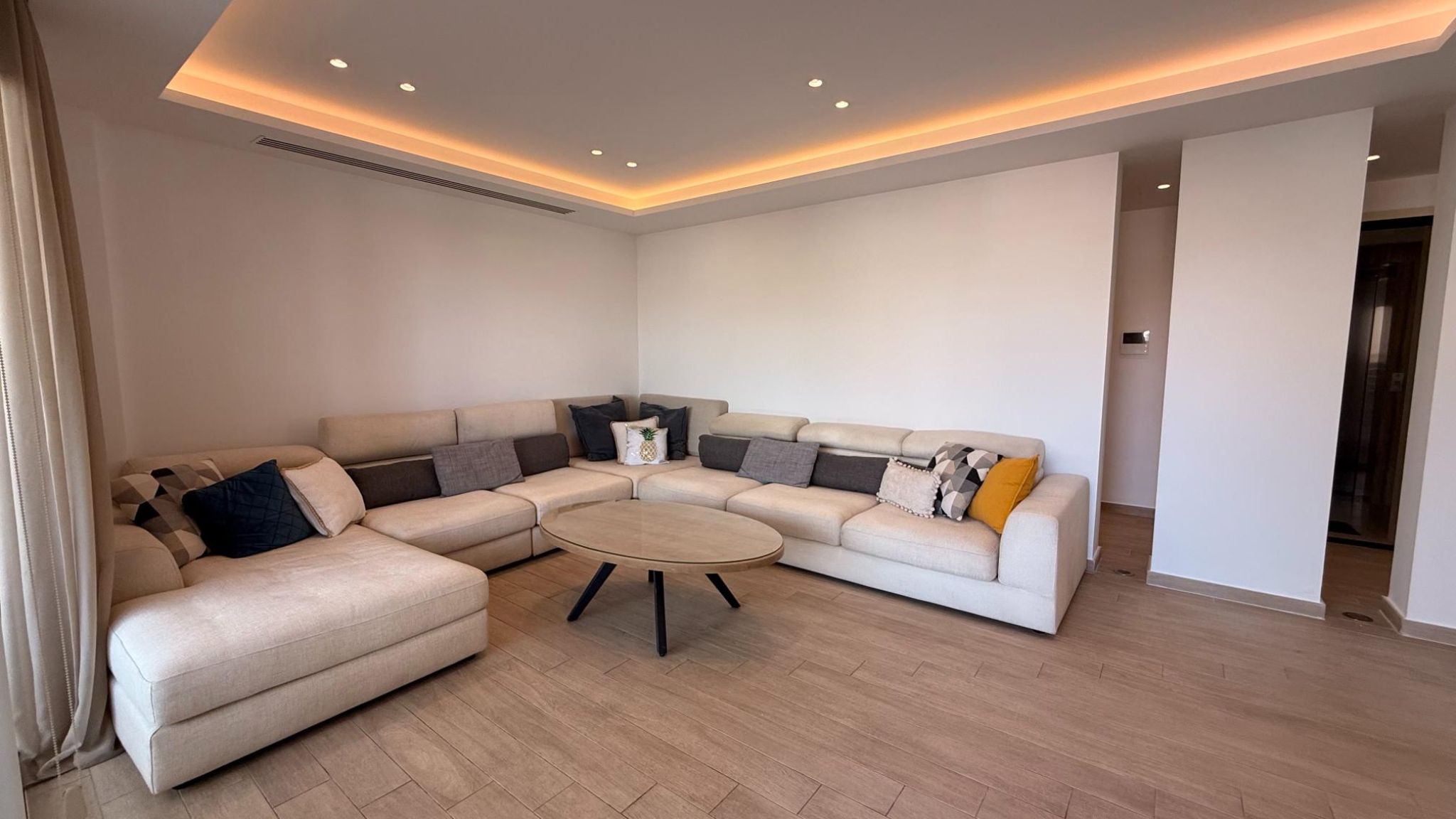 Fully furnished and equipped with a VRV air conditioning system, petrol underfloor heating, solar panels, and electric blinds, the apartment ensures year-round comfort.