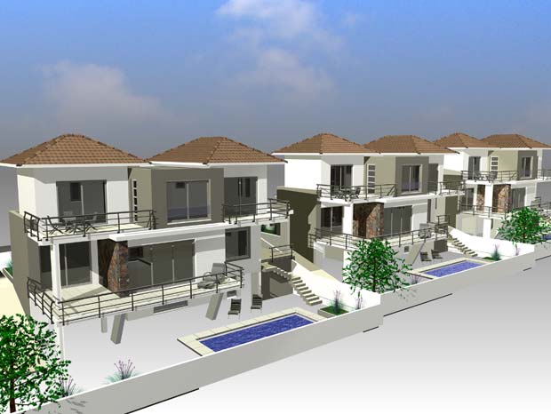 The project consists of 3 modern luxury four-bedroom houses with private pool and spectacular views.